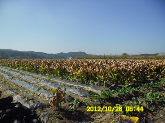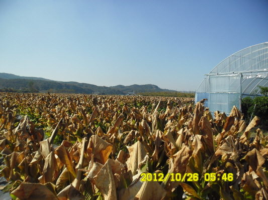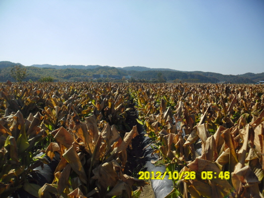 서리를 맞고 익어가는 울금의 모습입니다.